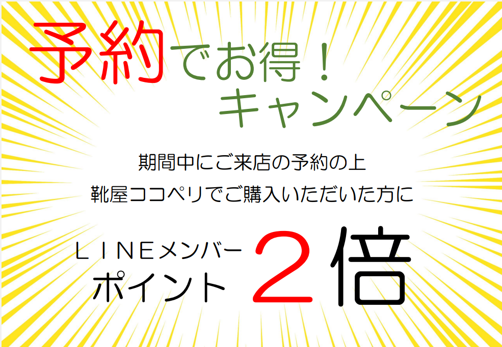 さて靴屋ココペリでは、今日からポイント2倍イベントを開催します✨